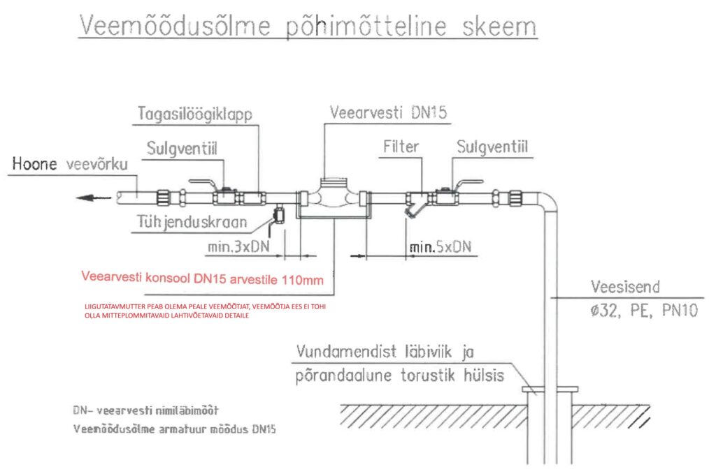 - Liitumise kontroll, veearvesti paigaldamine ja teostusjoonise esitamine
